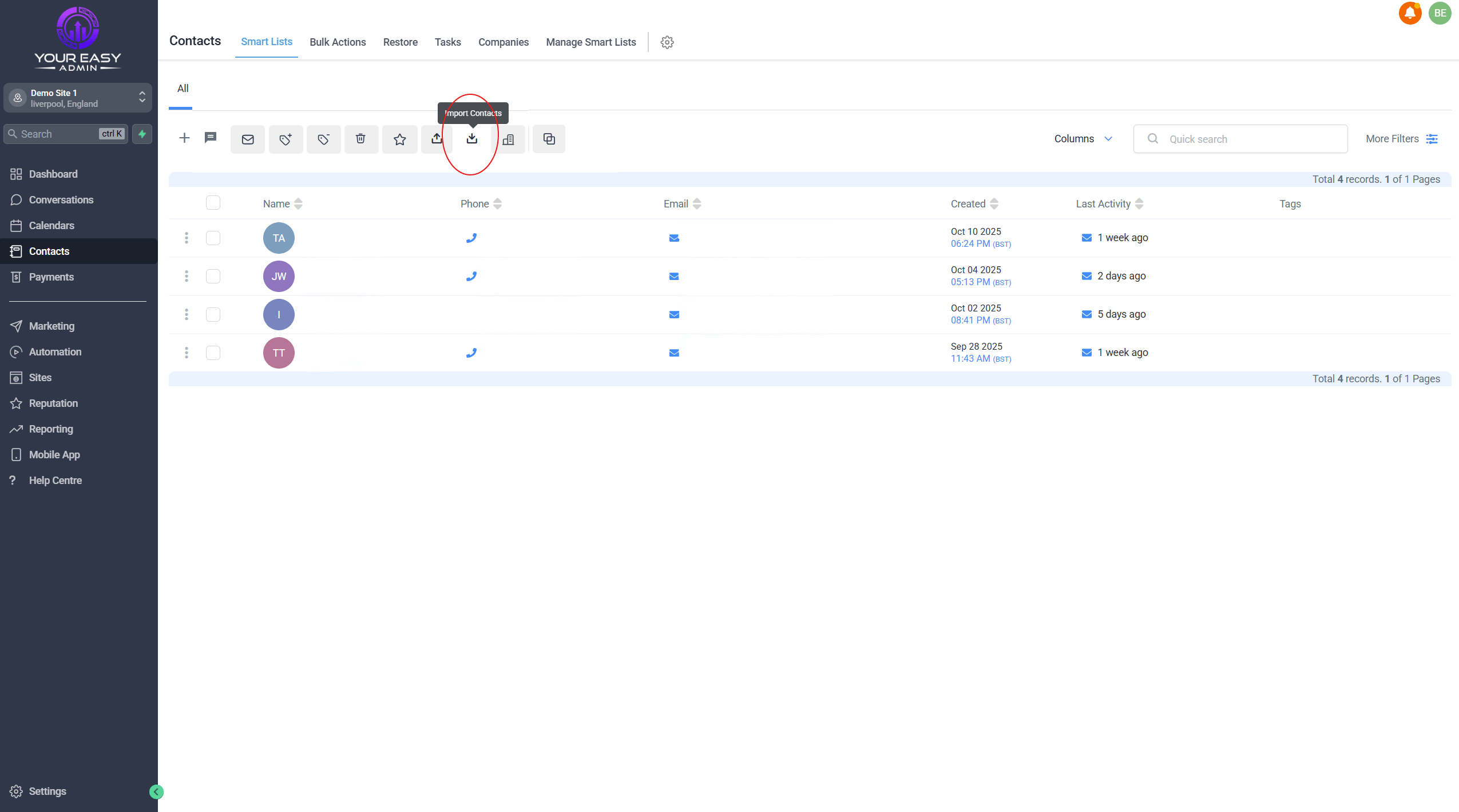 - Contacts > Import Contacts