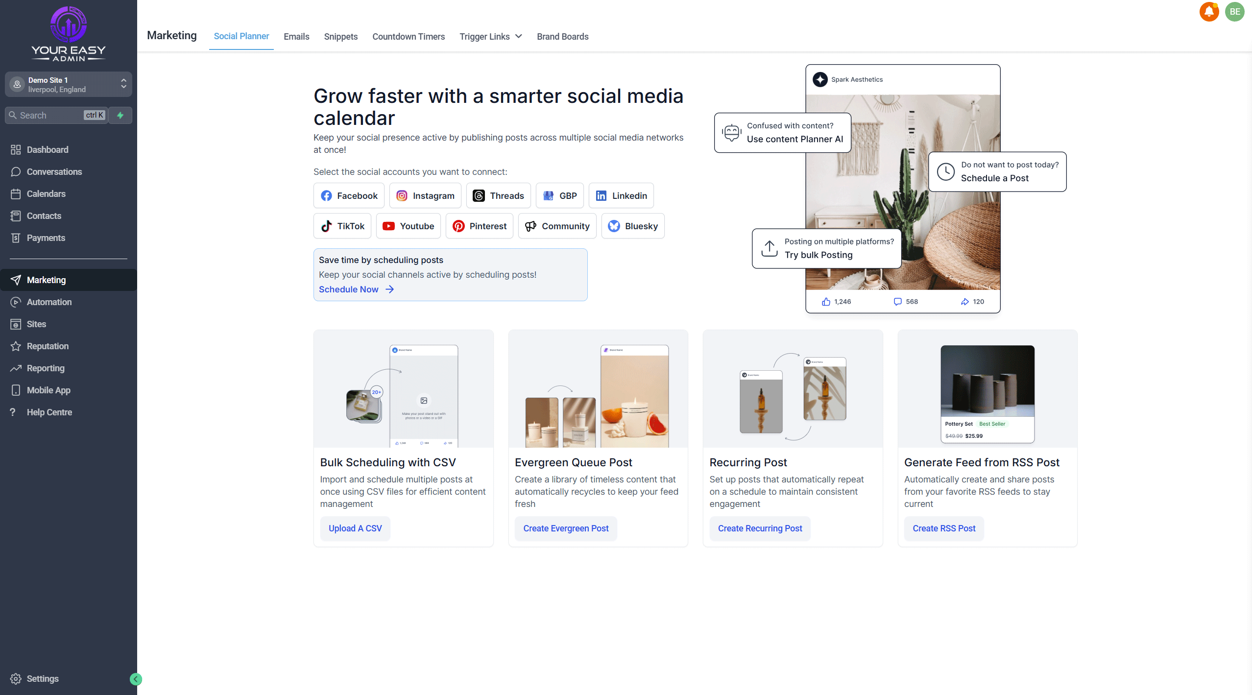 - Marketing > Social Planner